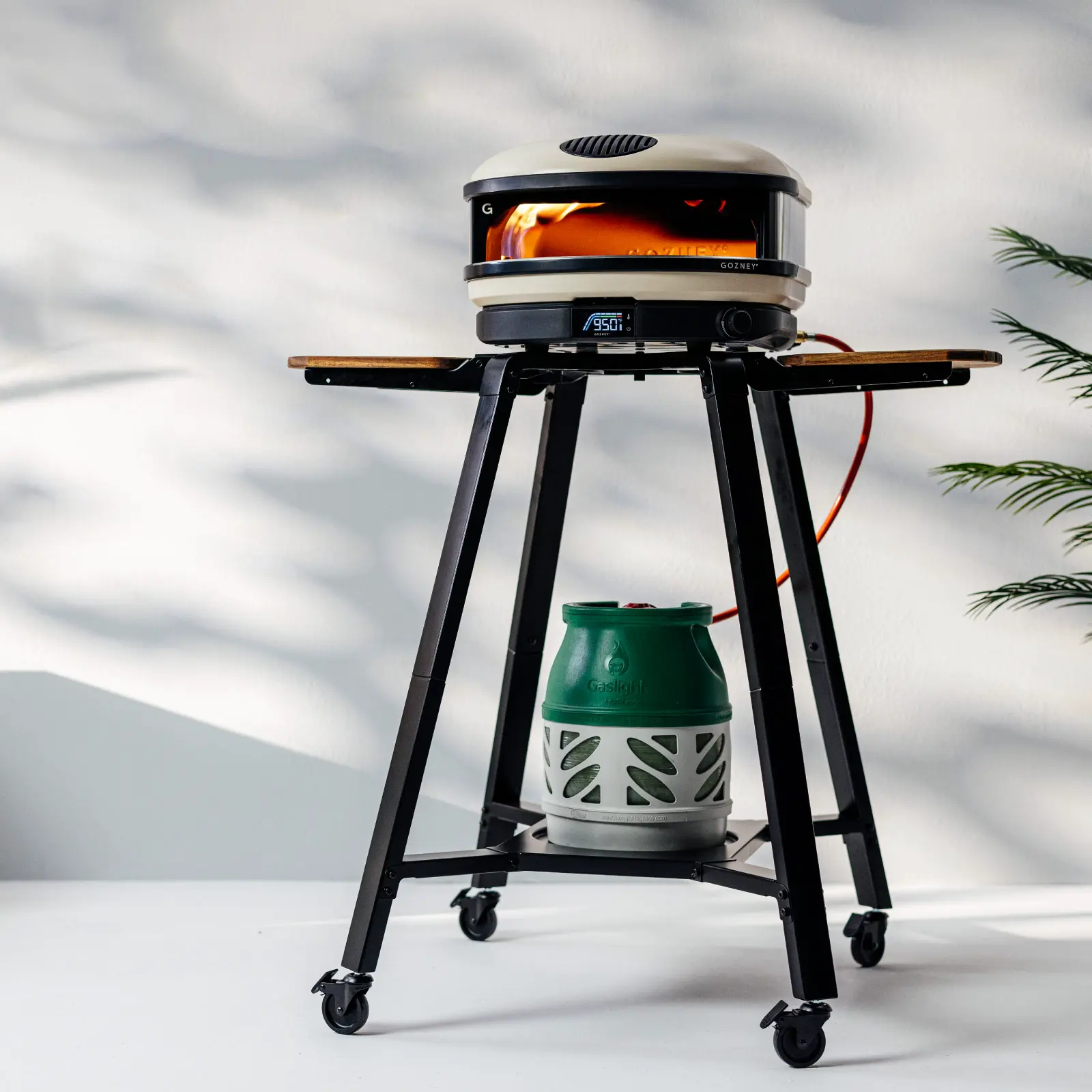 Gefertigt aus extrem langlebigem, pulverbeschichtetem Stahl, vereinen beide Produkte brachiale Stabilität mit eleganter Linienführung. Integrierte Ablagen für Dein Pizzaheber (Peels) sorgen dafür, dass Dein Werkzeug stets griffbereit ist und die Kochstation vor puristischer Ordnung glänzt.
