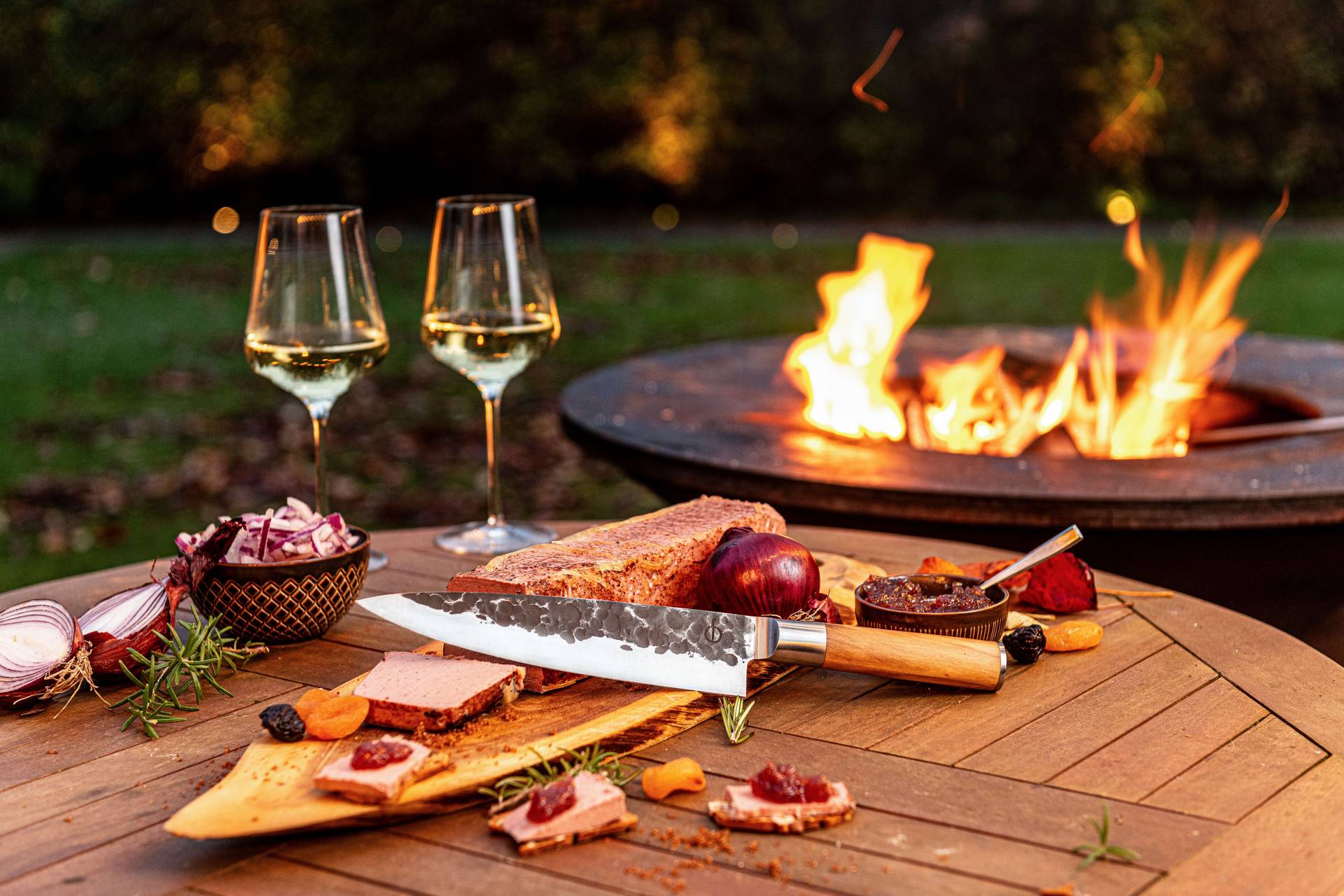 Das Olive Kochmesser ist ein großes Kochmesser mit ca. 20,5-cm-Klinge mit ausgeprägter Bauchform im typischen Look der Olive-Serie. Gefertigt wird es aus japanischem 440C-Stahl (ca. 58 HRC) und mit warmem Olivenholzgriff und gehämmerter Klinge, geliefert in einer Holzbox und ausgelegt für den regelmäßigen Einsatz in der Küche. Ideal, wenn du ein hochwertiges Kochmesser aus der Forged-Serie Olive kaufen möchtest – perfekt für deine Küche, den Grill und deine Outdoor-Küche. Erhältlich bei Feuershop.de.