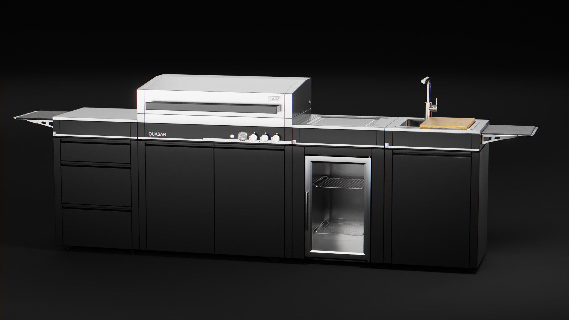 Mit den modularen Elementen von Bogason gestaltest du deine Outdoor-Küche exakt nach Bedarf: nahtlos kombinierbar, in vier seidenmatten Farben und auf Wunsch als stand-alone oder fest mit dem Grill verbunden. So entsteht ein stimmiges Set-up für Terrasse und Garten – funktional, langlebig und optisch aus einem Guss.