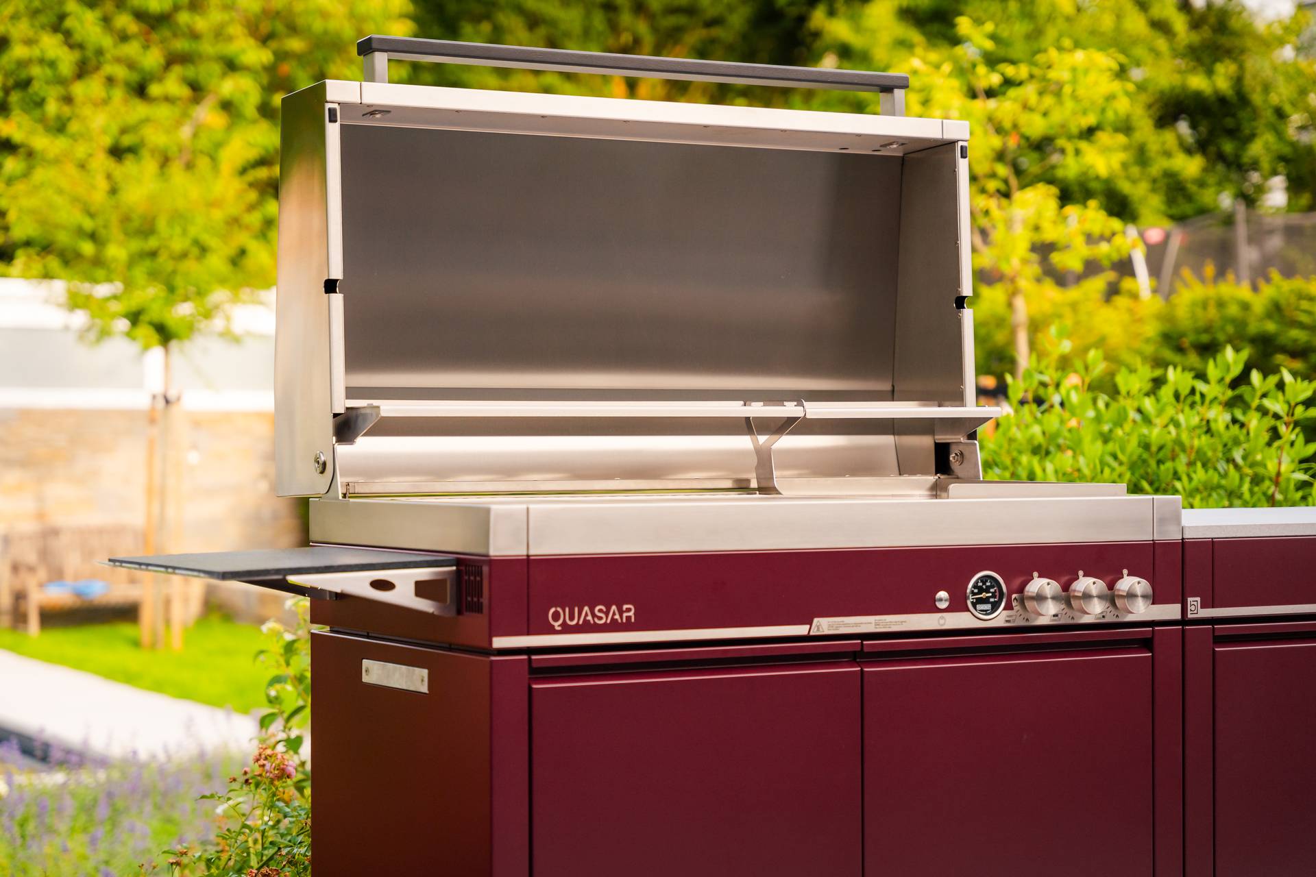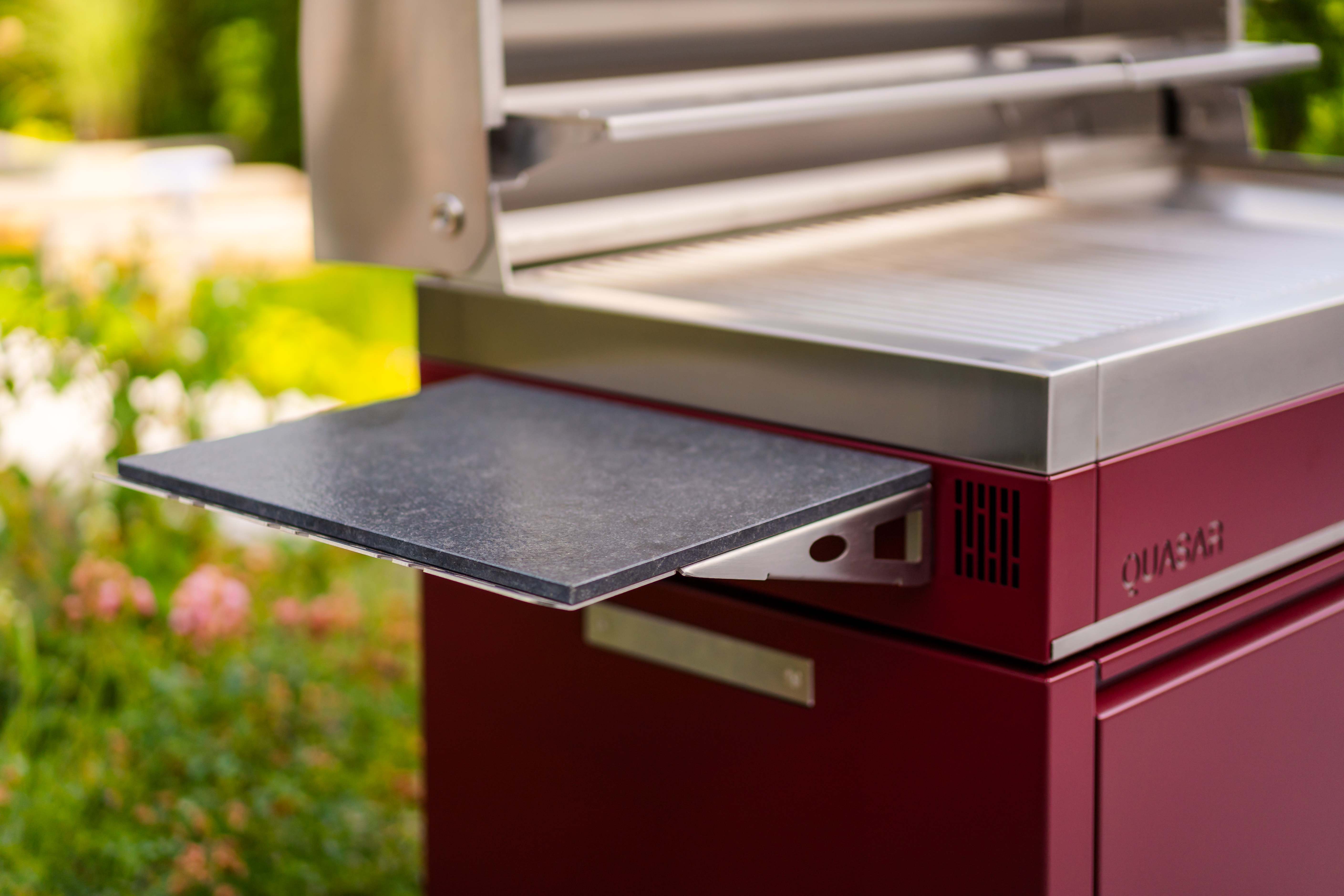 Die einfarbige Pulverbeschichtung in seidenmattem Weinrot (entspricht RAL 3005) verleiht dem Quasar einen eleganten, hochwertigen Auftritt. Auf Wunsch kannst du ihn sogar noch individueller gestalten: Weitere RAL-Farben sind auf Anfrage möglich – auch mit abgesetzter Bedienleiste oder andersfarbigem Korpus, damit dein Grill perfekt zu deinem Geschmack passt.