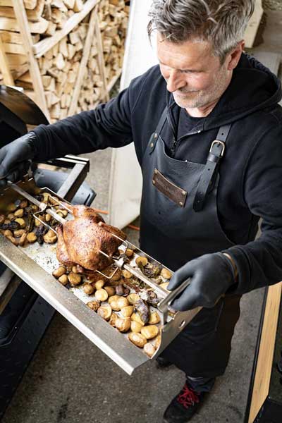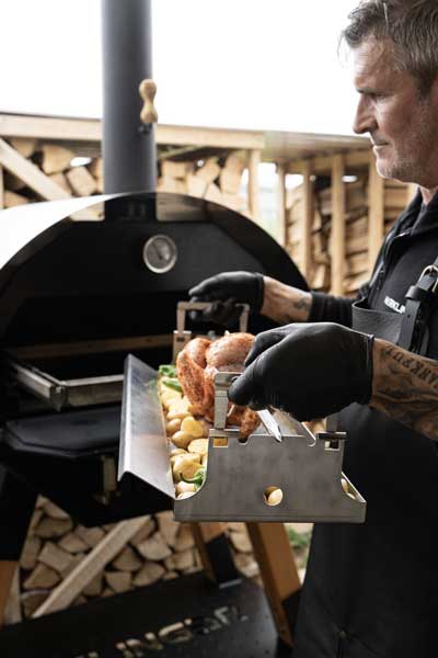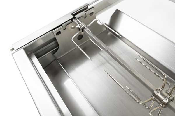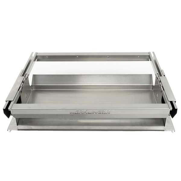 Eine tolle Erweiterung für die Merklinger Rotisserie. Die Tropfwanne kann einfach in die Rotisserie eingesetzt werden. Während die Rotisserie läuft, kannst du in der Edelstahl Tropfwanne leckere Beilagen schmorren lassen und das Fett tropft eben nicht in die Glut oder in das Feuer. Dazu erhältst du zwei Griffe, um die heiße Tropfwanne aus der Rotisserie zu nehmen.