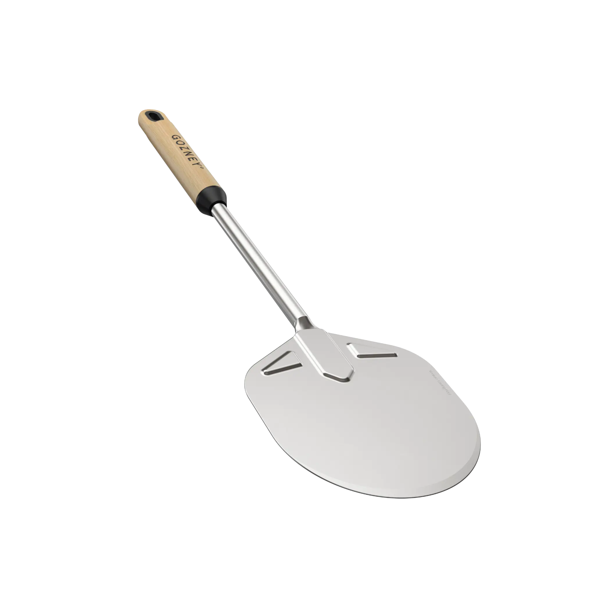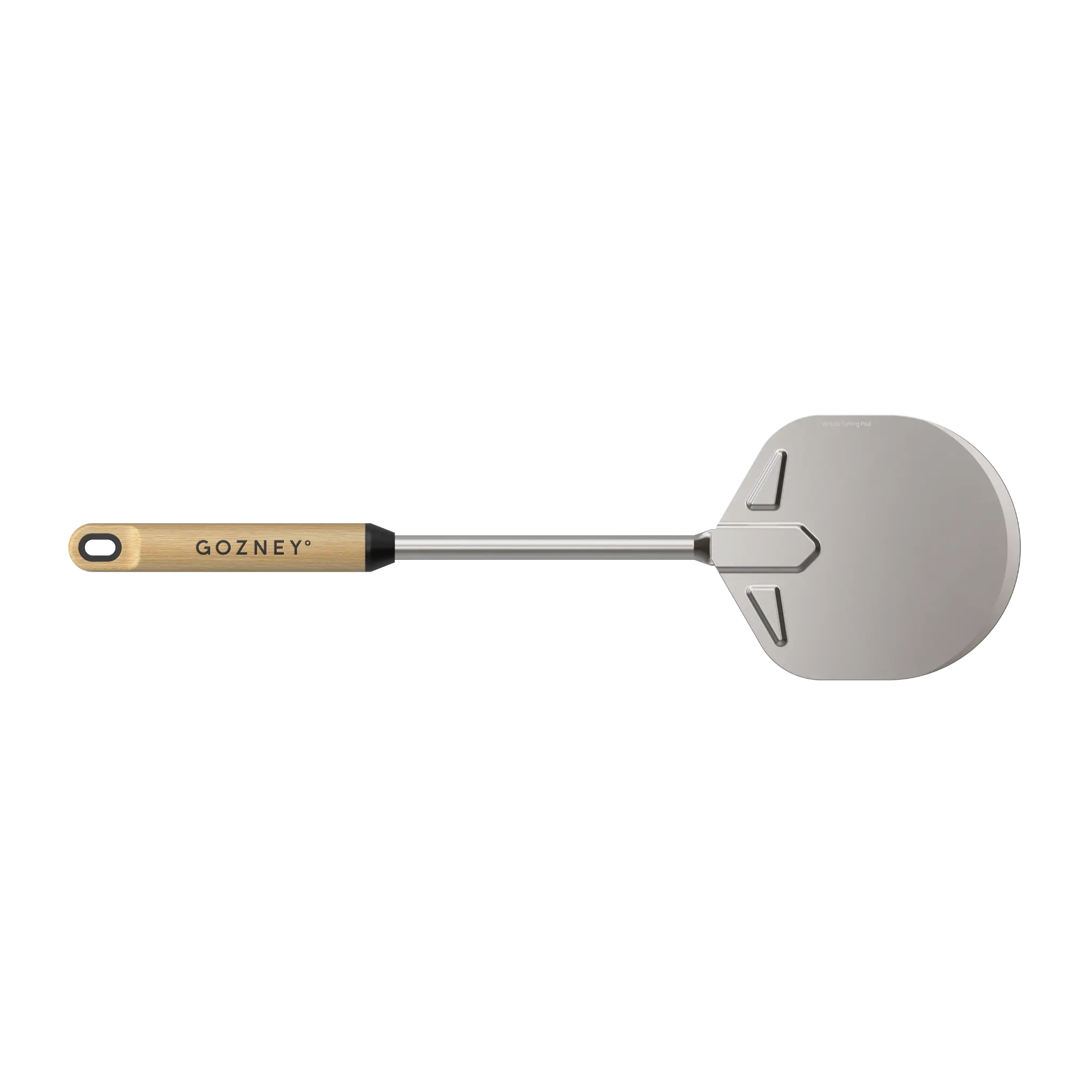 Balance Heber (12" M / 14" L) & Balance Wender Die Symbiose aus Leichtmetall und Holz. Der Gozney Balance Heber vereint das hochfunktionale, perforierte Aluminiumblatt mit der taktilen Wärme eines handgeschmeichelten Buchenholzgriffs. Dieser massive Griff verlagert den Schwerpunkt des Werkzeugs auf faszinierende Weise, sodass die Hebelwirkung beim Anheben der Pizza minimal wird. Er liegt derart natürlich in der Hand, dass das Einschießen sofort in Fleisch und Blut übergeht. Der dazugehörige Balance Wender bietet durch dieselbe ergonomische Holzführung stundenlangen, ermüdungsfreien Komfort beim Rotieren der Pizzen in der glühenden Kammer.