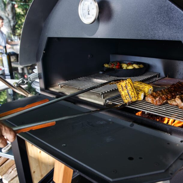 Der verlängerte Arm zum Marinieren, Wenden und Servieren von Fisch, Fleisch oder Grillgemüse. Mit einem Verriegelungsmechanismus und einer Öse zum Aufhängen lässt sie sich platzsparend verstauen, wenn sie mal nicht im Einsatz ist.